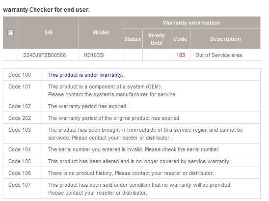 Garantiestatus: code 103 Out of Service area