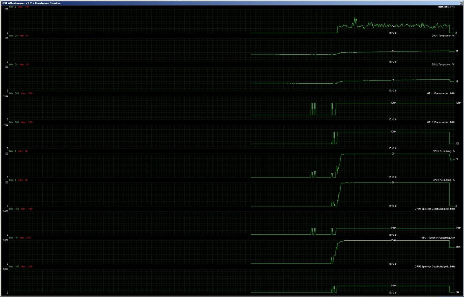Sehr interessant bei Multi GPU Systemen ist auch eine Aufzeichnung der GPU Load mit dem AFTERBURNER auf vollen 64 Servern hat man ein CF oder SLI liegt meist ein schlechte GPU Load an.