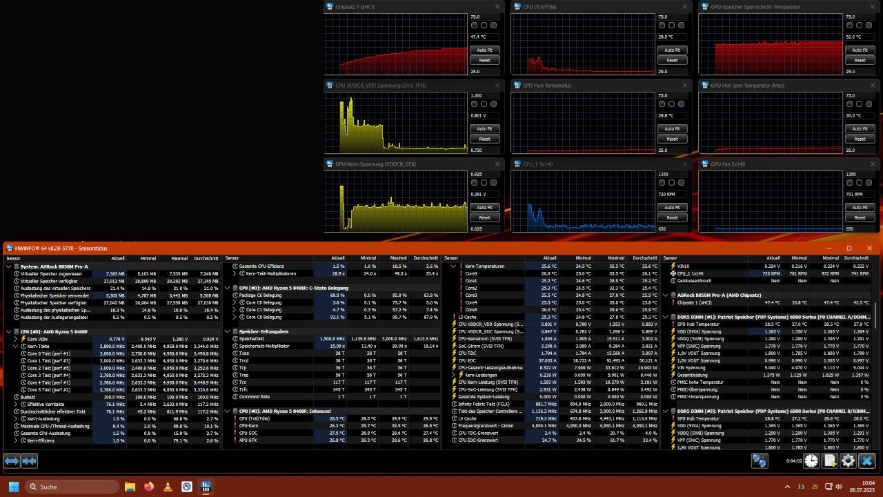 unmittelbar nach dem einschalten des pc's liegen alle temp.-werte bei mehr oder weniger leicht über raumtemperatur. die einzige ausnahme ist die gpu-speicher sperrschicht-temp.