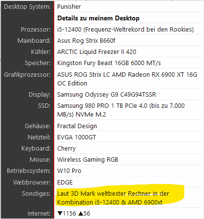 Und gib gern der TS Rangliste mit einem Eintrag die Ehre. BTW: Paar Pünktchen mehr und du landest bei den 6900 XTX in den sichtbaren Top Ten.