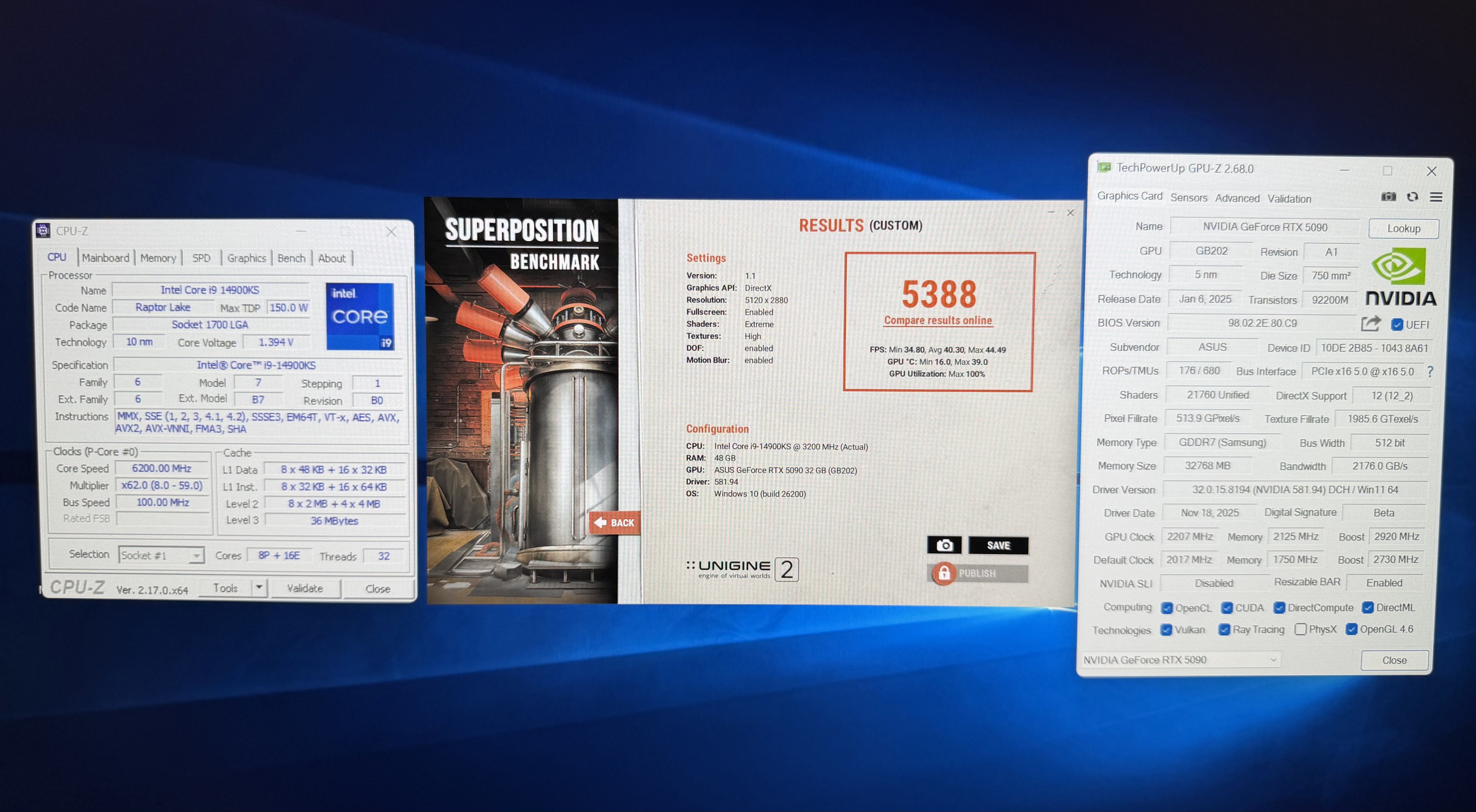 Bitte darauf achten, dass weder GPU-Z, CPU-Z oder Benchmarksettings überdeckt werden!!!