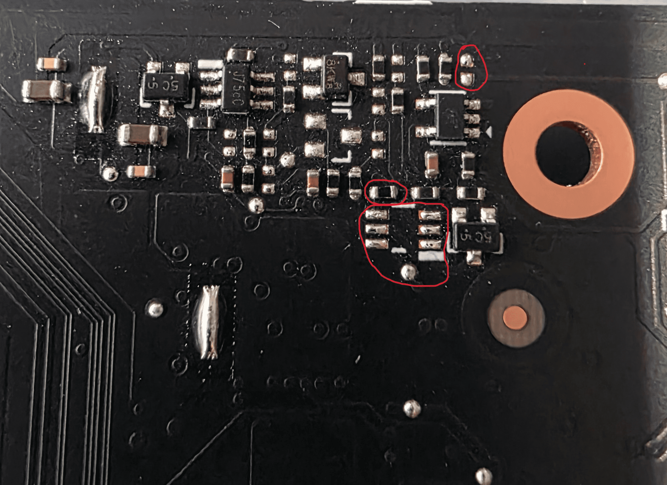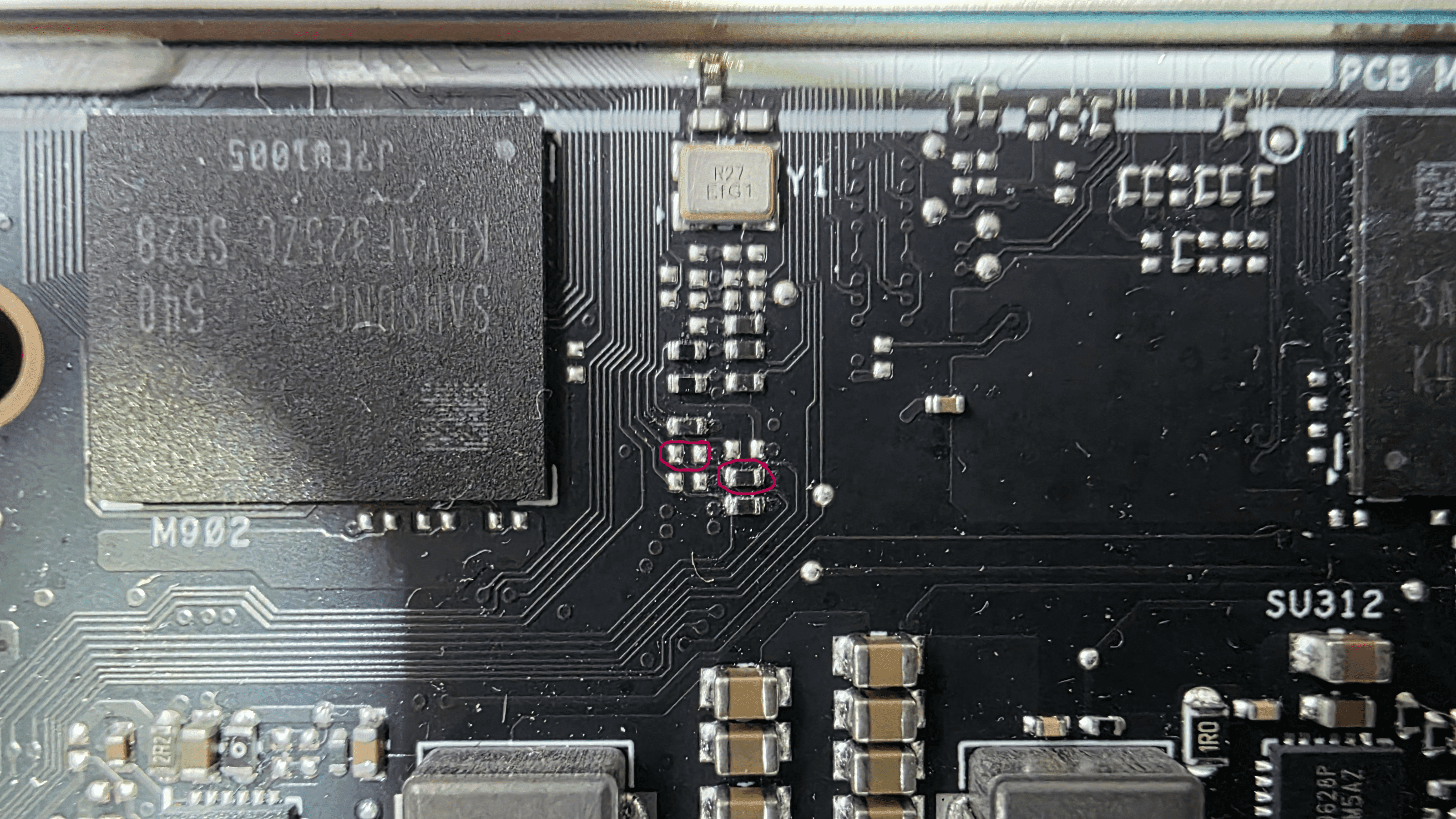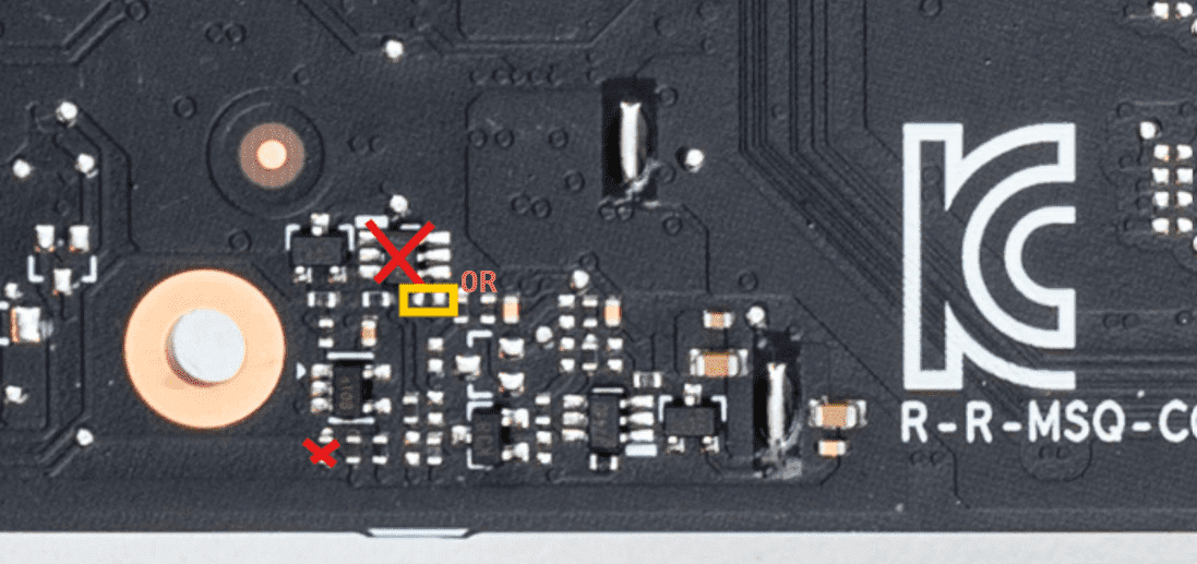 Es ist ein 100k ohm Widerstand mit 0402 Größe. Ich sehe das ding ohne Mikroskope nicht. 🥸