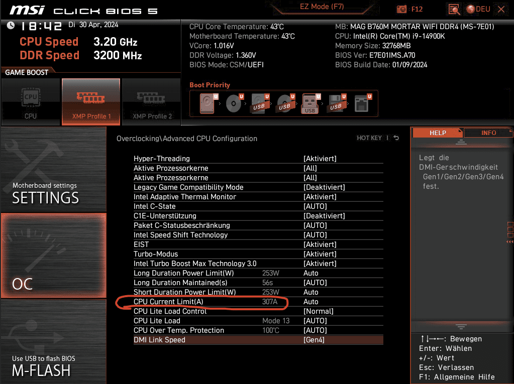 Hast du schon mal versucht PL1 PL2 auf 253W zu stellen und ICCMax auf 307VShort ist bei mir auf 280 Watt eingestellt.
