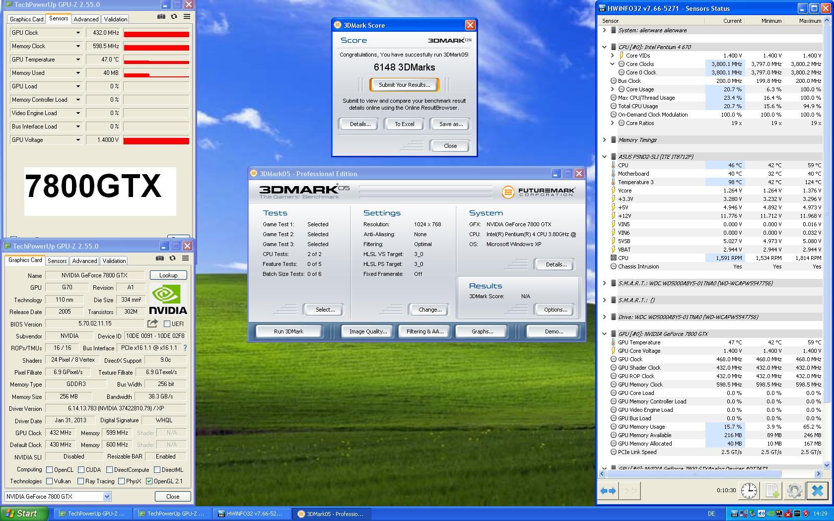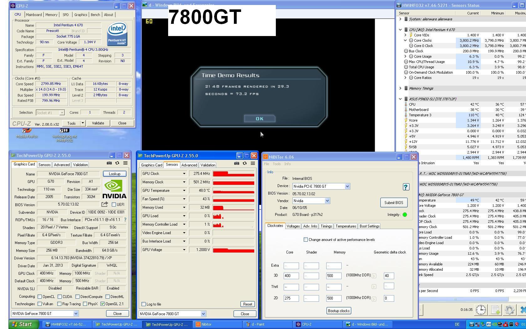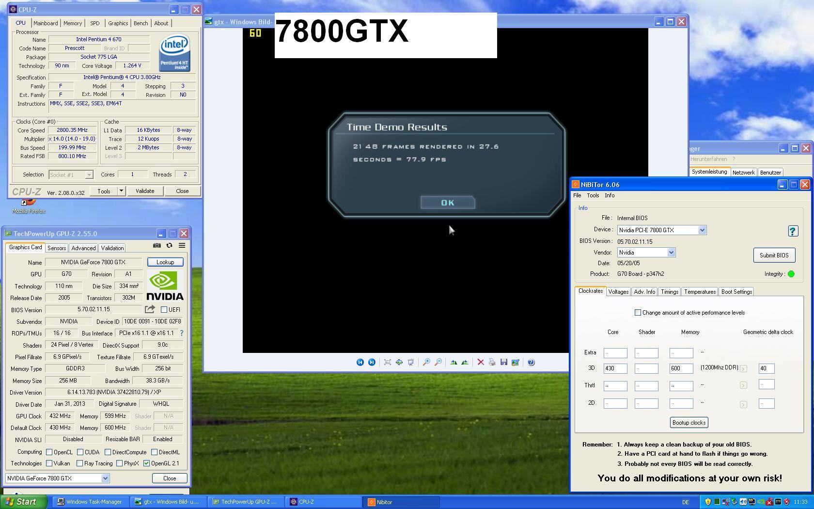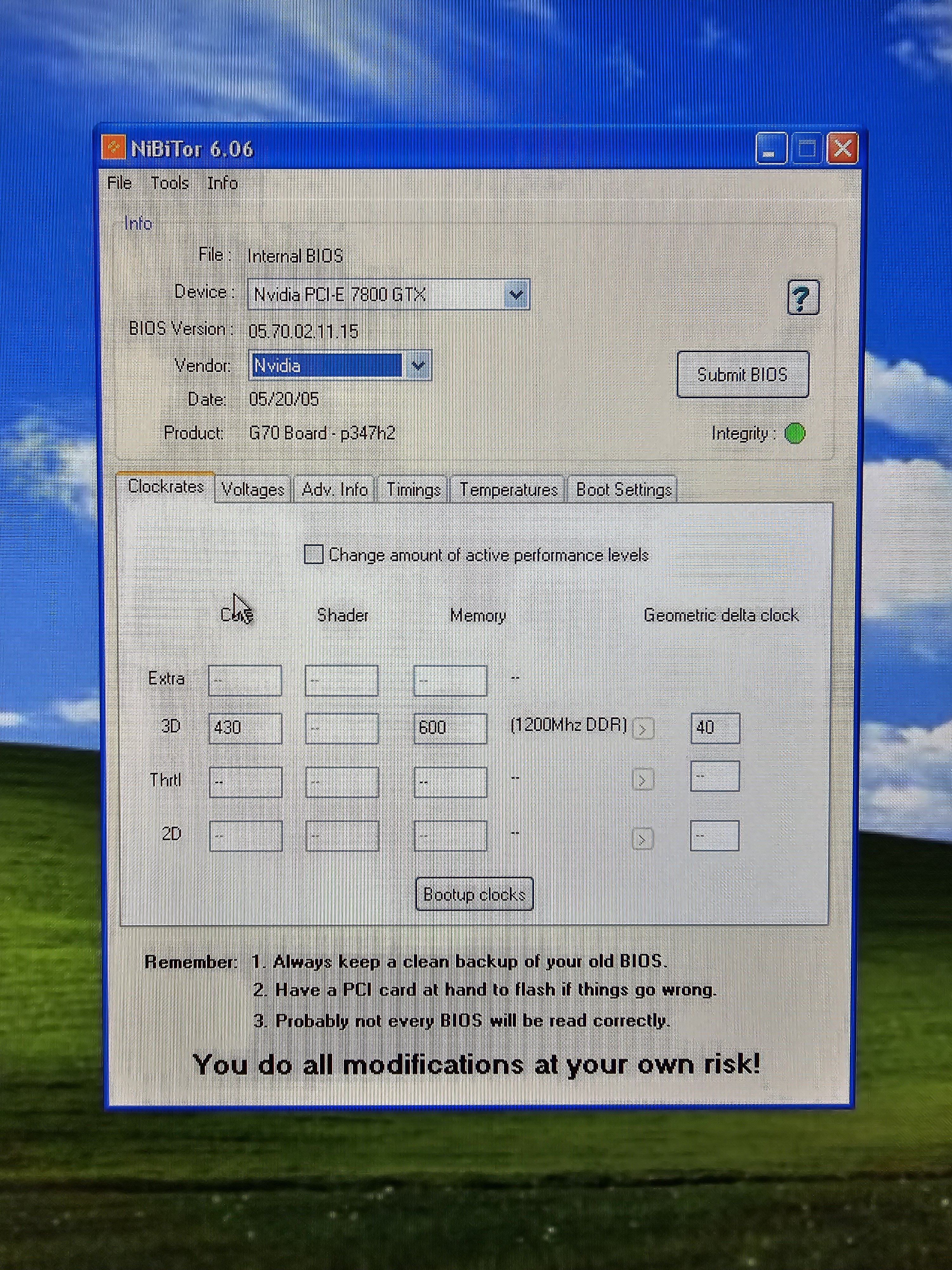 Der G70 hat drei Taktraten. ROP, Shader und Geo. Letzterer wird über den Geo delta offset eingestellt. Gute Karten haben ein Offset von +40 bis +60 Mhz, die schlechten +0MHz.