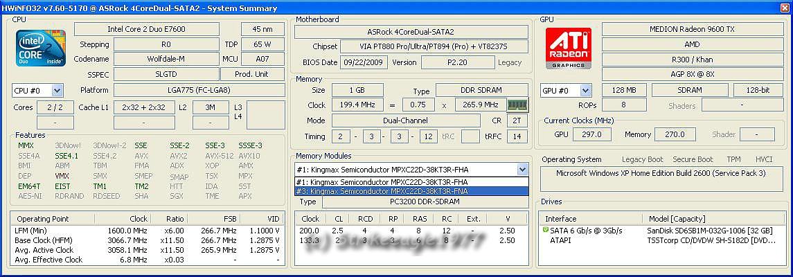 Ich habe wie angekündigt grade ein sehr ähnliches System zusammengesteckt und nur ein frisches XP und Treiber installiert.