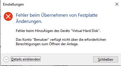 Wenn ich jetzt versuche die VHDX der Failoverrolle "test1" zuzuweisen kommt folgende Meldung: