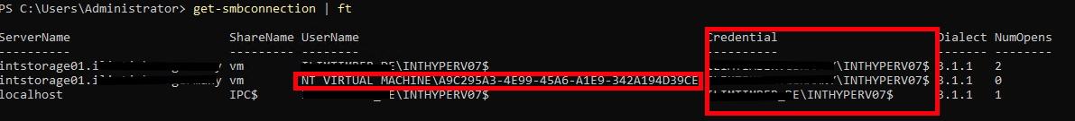 Das mittlere ist der Hyper-V Dienst, ich sehe, er läuft im Kontext eines Systemdienstes aber mit den Credentials des Computerkontos...