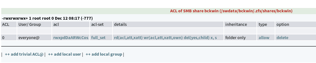 Beim Einrichten des Share auf dem napp-it habe ich die Standardeinstellungen übernommen. Workgroup Einstellung habe ich nicht verändert. Der client hat dieselbe Workgroup.