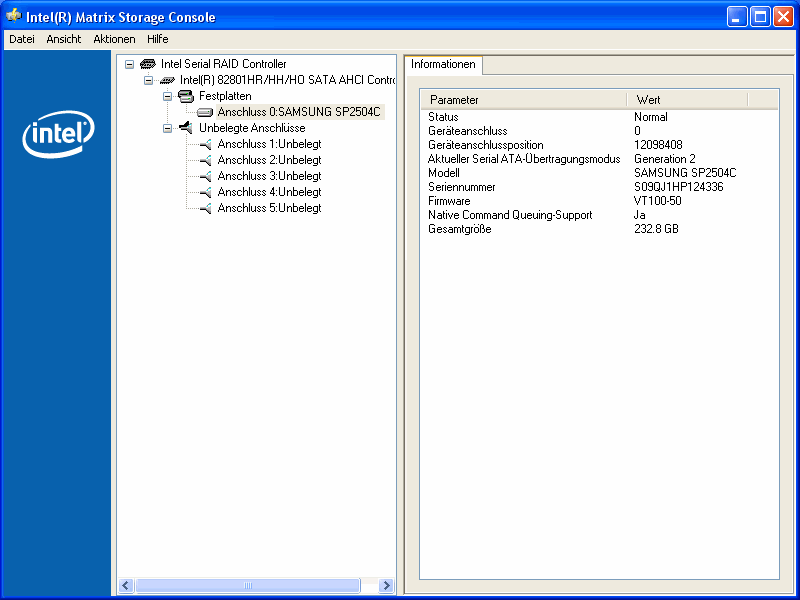 Ich habe meine Festplatte an SATA1 angeschlossen.