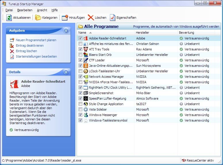 probiers mal aus und mach die Häkchen wech und starte dann neu! (brauchst de nen key für TuneUp Utilities 2007?)![]()
