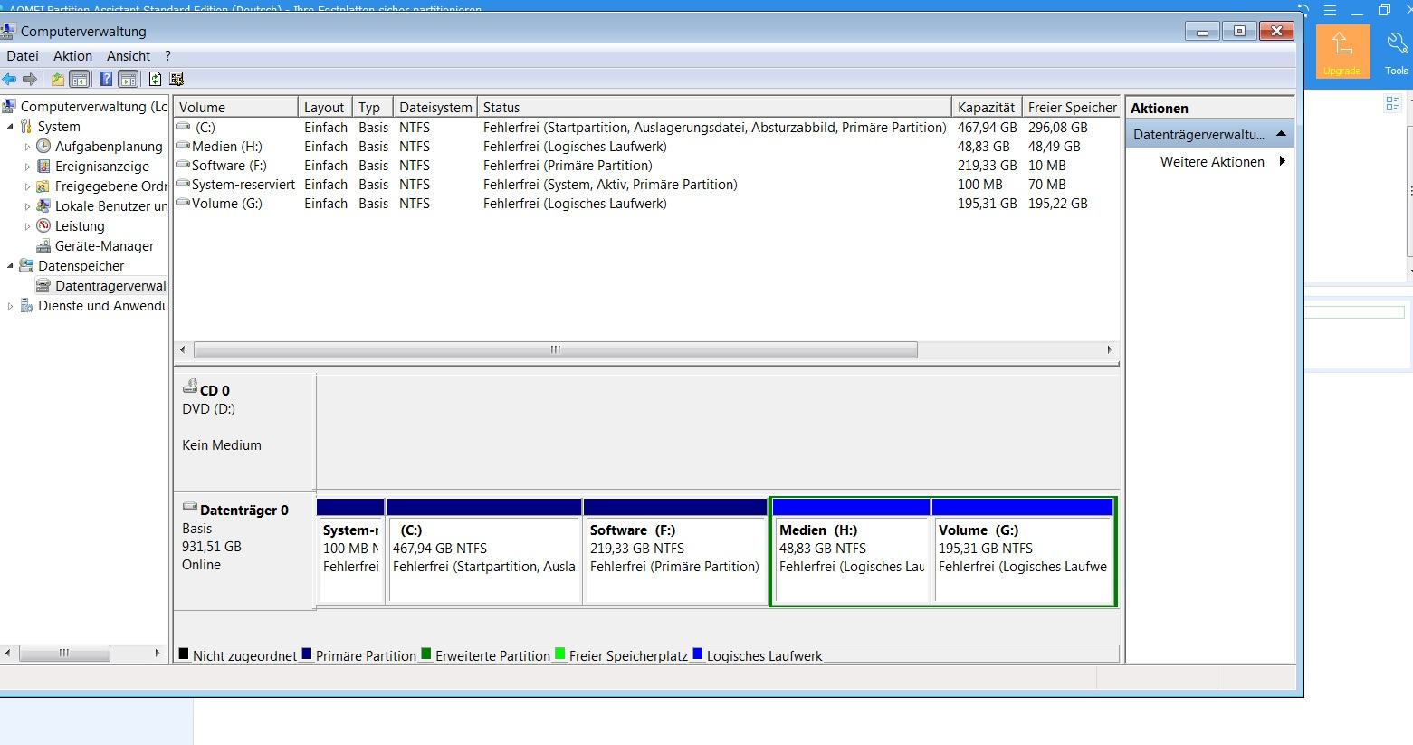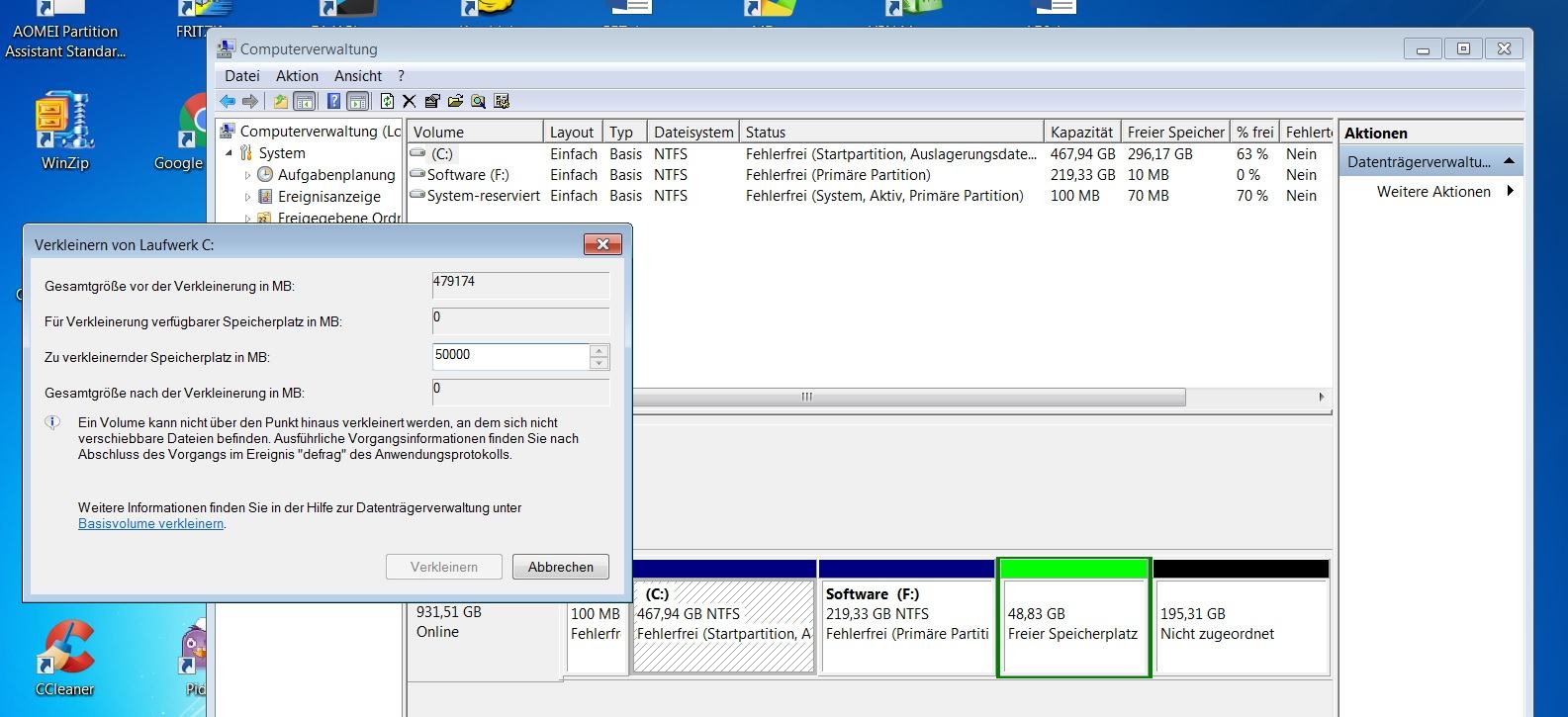 Also entweder C verkleinern oder G und H löschen (da sind ja lt. Bild eh keine Daten drauf, warum also diese Laufwerke?).