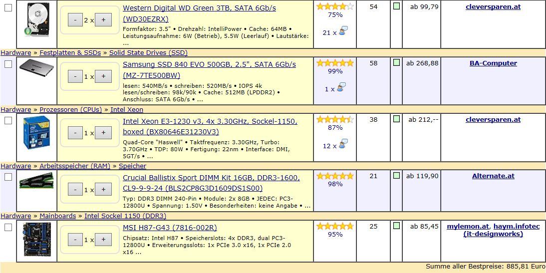 Behalten werde ich sicher das Gehäuse, das Netzteil, die SSD und die 500GB Platte!