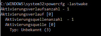 USB und Ethernet Adapter kann ich ausschließen (Bereits alles deaktiviert). Wenn ich in der Konsole den Befehl "powercfg -lastwake" ausführe, meldet er nur Unbekannt zurück (siehe Screenshot).