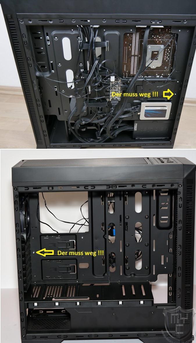 Auf allen Bildern die ich vom Inter-Tech X-908 Infini2 Mirror Gehäuse gesehen habe war immer ein Abstandhalter falsch eingebaut.