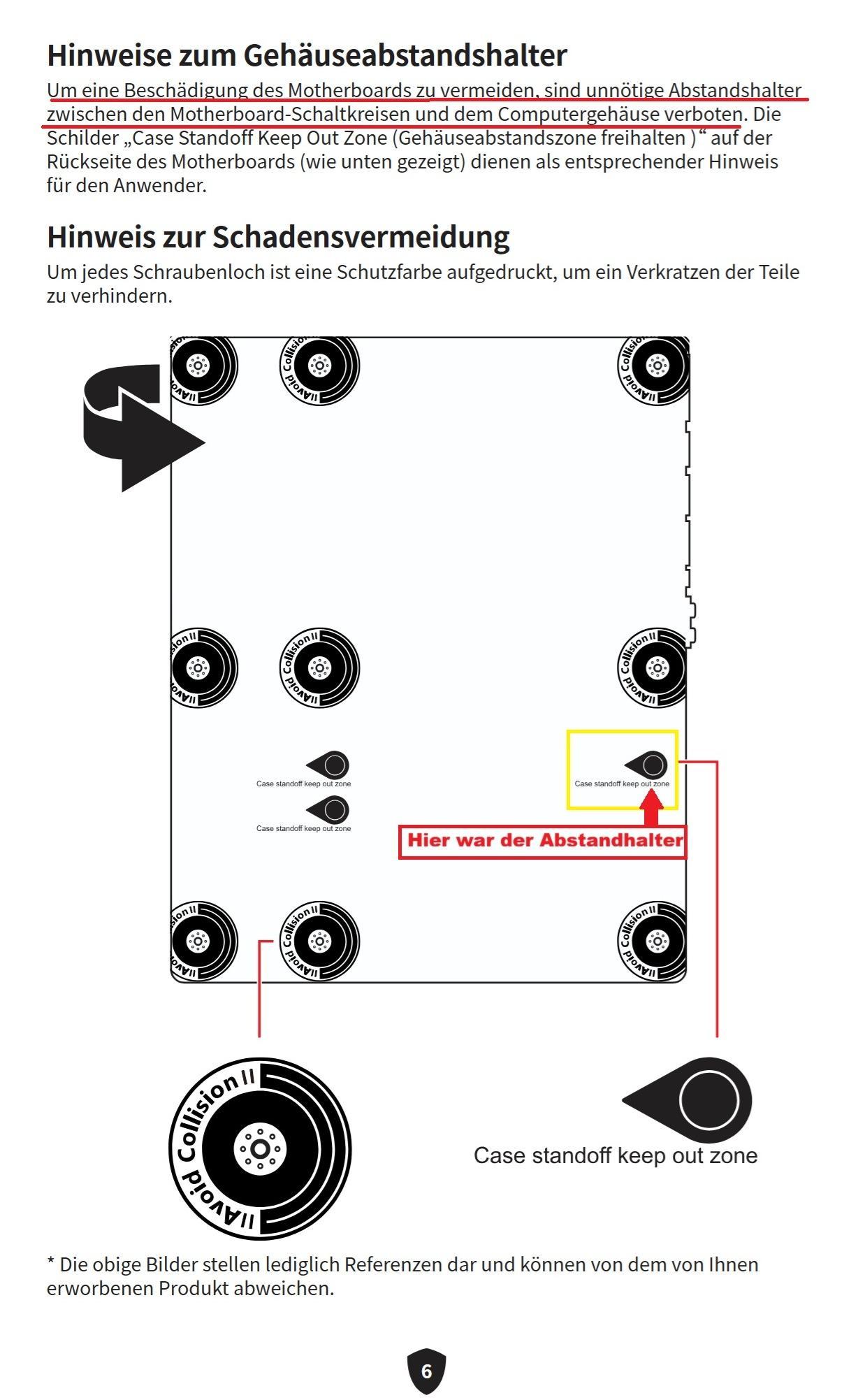 Wie schon erwähnt, jeder Abstandhalter, der einen Kurzschluss verursacht, kann das Mainboard beschädigen.