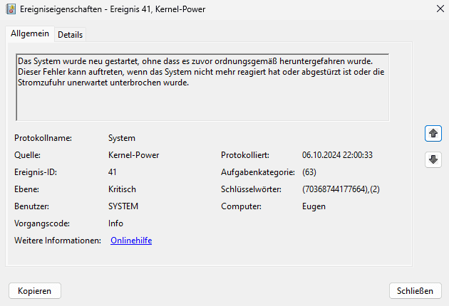 Ich hab nun seit ein paar Wochen das Problem, das mein PC unter Last einfach abstürzt und dann unendlich lang ohne Bild versucht zu booten (Grafikkarte, Mainboard und Rams leuchten weiterhin). Damit der PC wieder normal startet muss die Power taste gedrückt halten damit der PC ausgeht und kann dann wieder ganz normal starten. Wann der PC abstürzt ist komplett zufällig, mal passierte das nach 5 Stunden spielen, mal nach 2 Stunden... ebenfalls ist mir aufgefallen das nachdem ich den PC wieder anschalte und mein Spiel wieder starte der PC wieder nach 1 Stunde ausgehen kann aber auch mehrere Stunden weiter laufen kann ohne das das Problem wieder auftritt.