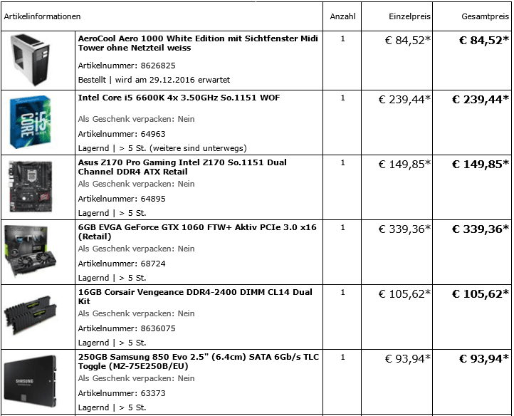 ich würde mich freuen, wenn jemand mal drüber schauen könnte (angehängtes Bild). Ist der PC gut aufgebaut, oder bremsen sich möglicherweise Komponenten aus? Reicht die Netzteil-Leistung und Kühlung? Ist das ganze preiswert? Hättet Ihr etwas anders gemacht? Ich möchte mit dem PC aufwendige Video-/Foto-Bearbeitung betreiben, aktuelle Spiele spielen und am besten auch aufnehmen.