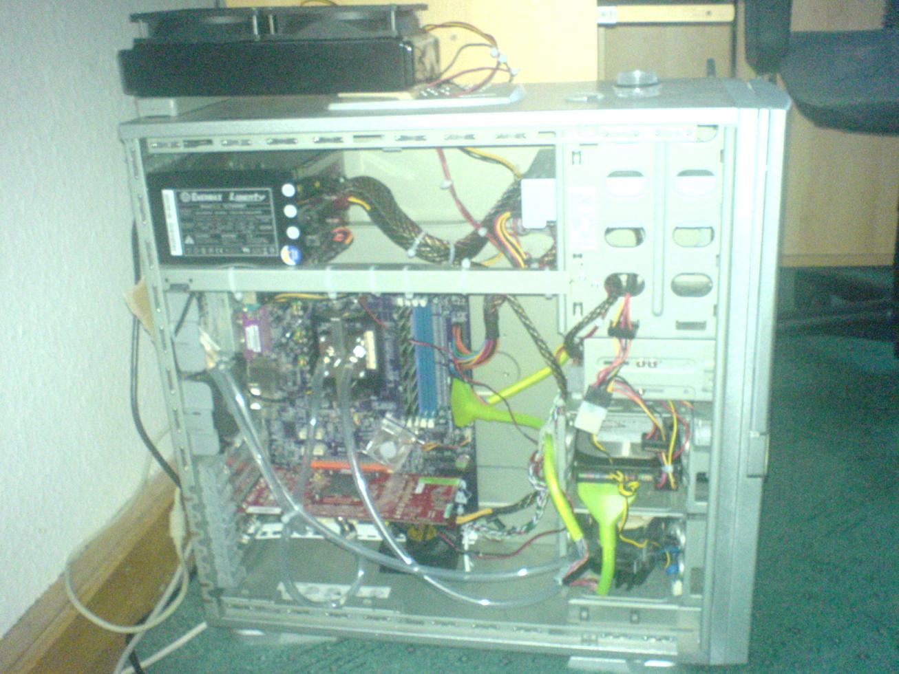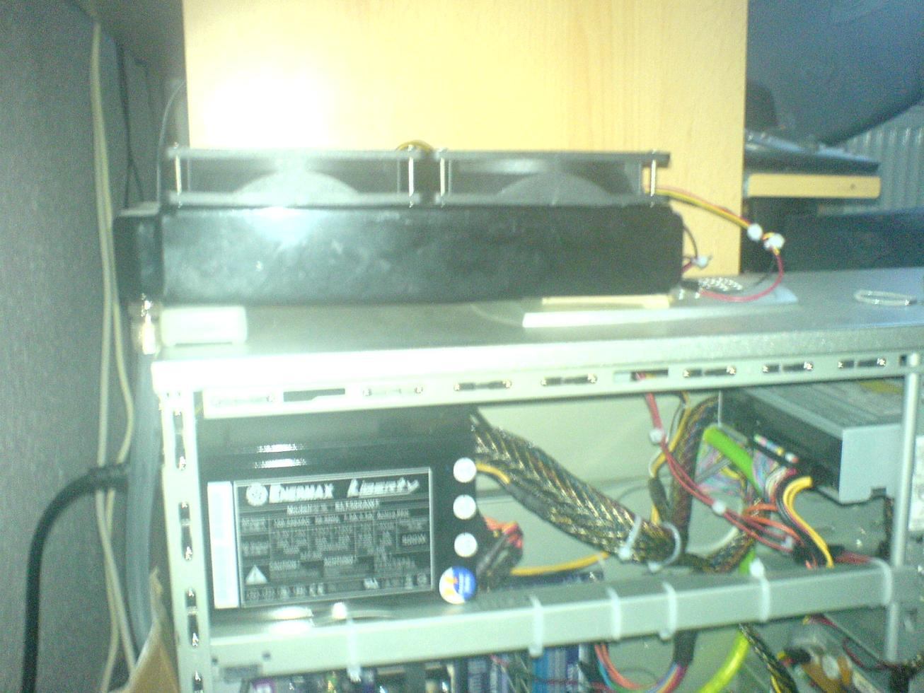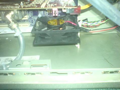 um die Spannungswandler meiner X1800XT zu kühlen habe ich wie auf dem Pic zu sehen ist einen 80mm Lüfter deer an eine Lochblech ähnlich einem Lineal angeschraubt ist und dieses durch den freien PCI slot meines gehäuses nach aussen geführt und dort mit Kabelbinder befestigt also eine ziemlich Wakelige angelegenheit.
