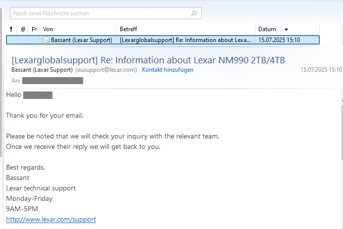 edit: Gerade eingetrudelt, Antwort von Lexar: