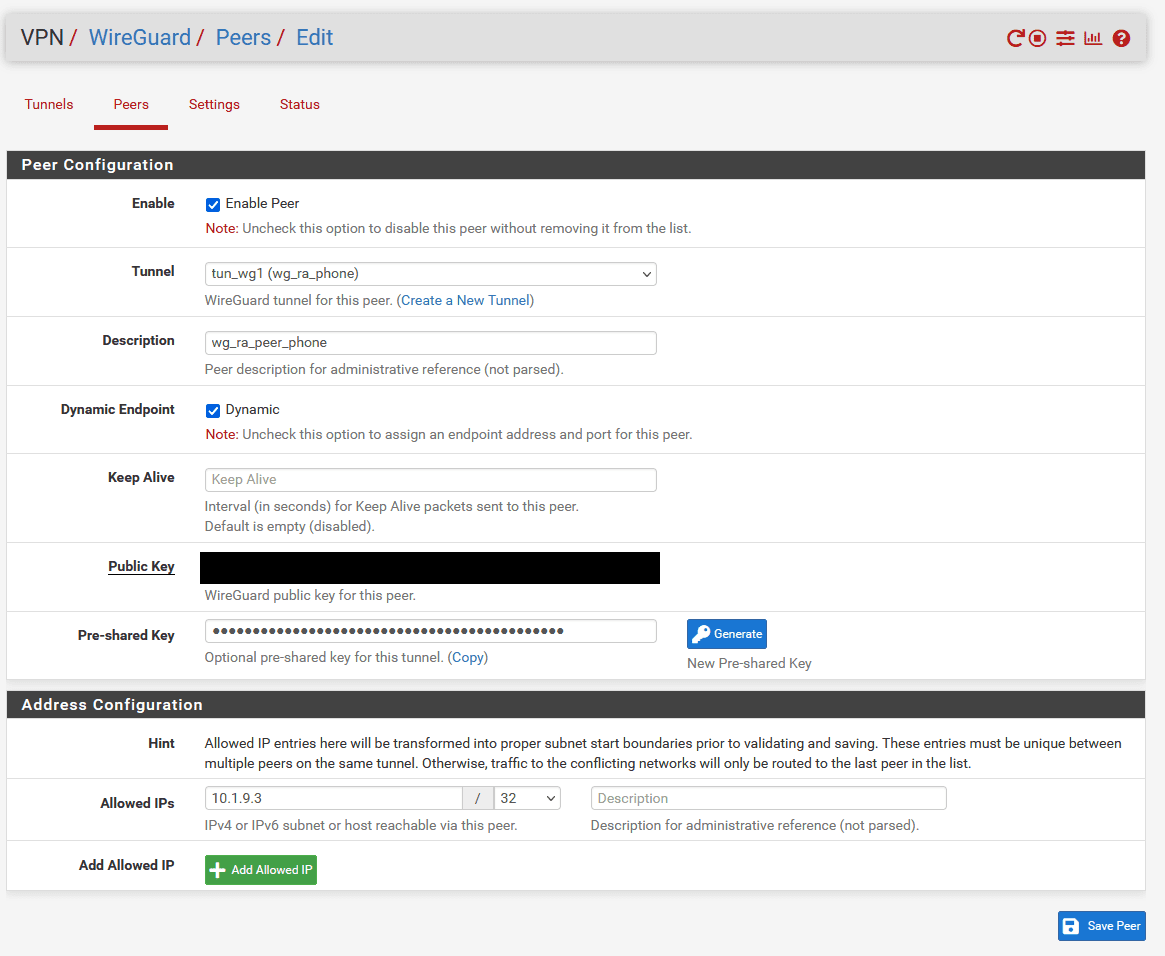 Würde nicht etwas mit .0 am Ende nehmen, außer das Netz ist /31. Also lieber bei beiden die .1 am Ende.Wenn man auf der OPNSense bei WireGuard-Server die "192.168.100.0/24" eingetragen hat, dann muss man beim iPhone auch die "192.168.100.0" nehmen - warum auch immer, hab ich da "192.168.100.1" eingetragen!?