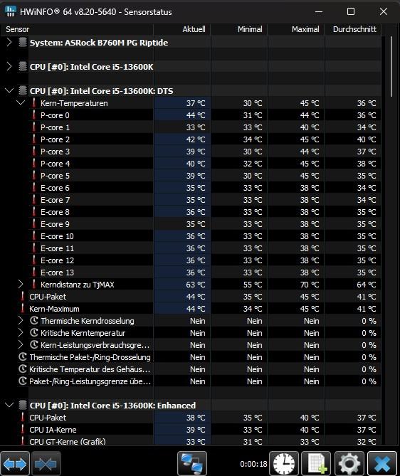 Hier hat sich die CPU Temperatur nach ca. 10min Prim95 Last bei 65°C eingependelt