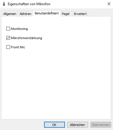 Woran liegt's wenn ich bei der Mikrobuchse am Pc Gehäuse zwar vollen Anschlag bei der Mikrolautstärke hab aber es beim Sprachrekorder nur deutlich rauscht? Bei der Buchse am Mainboard geht's vom Ton her einigermaßen normal aber da ist der Ton nur ganz minimal beim Mikrofon Test bei den Soundeinstellungen.