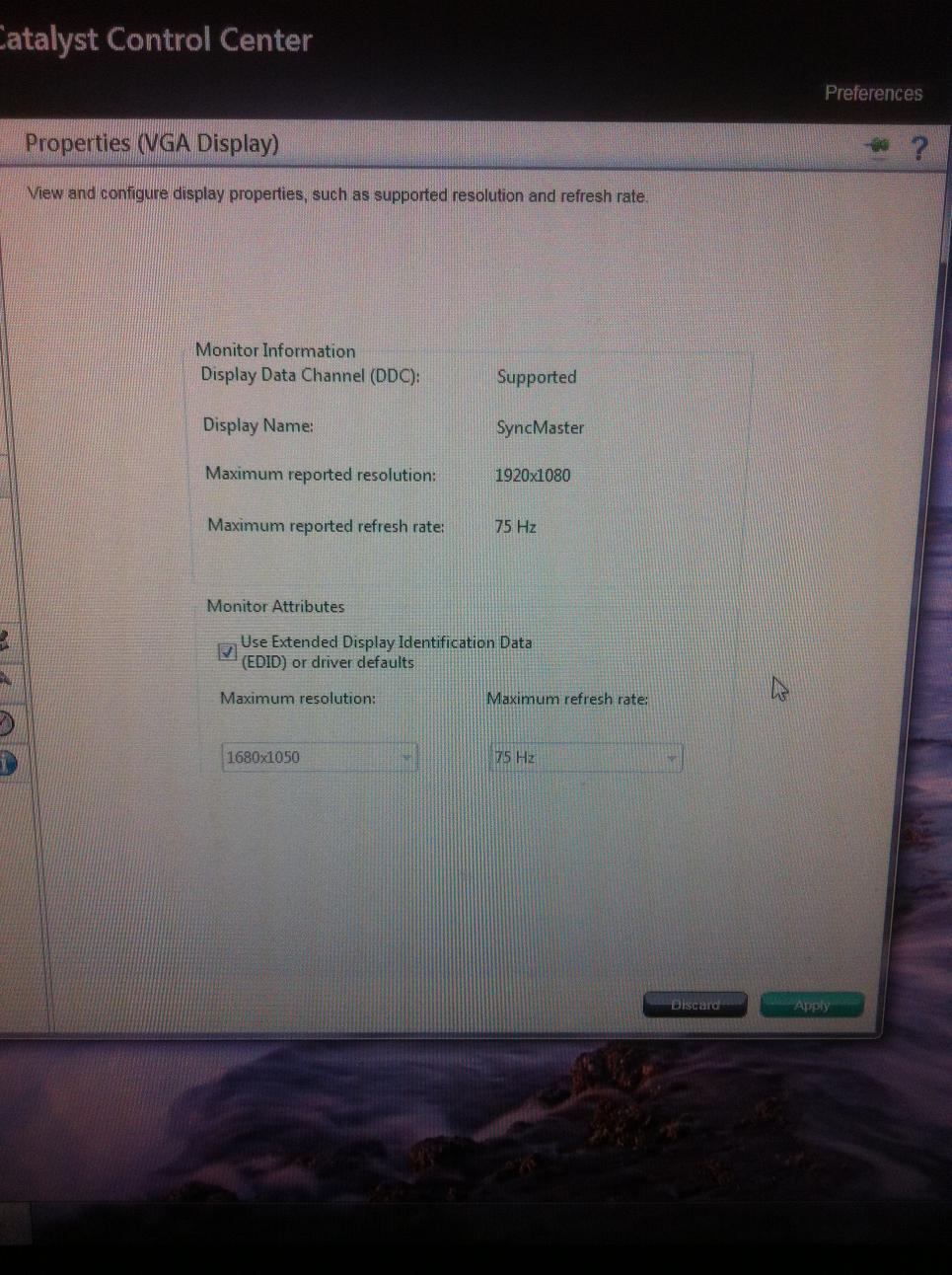 in der fehlermeldung kommt ja immer 1680 x 1050 60 HZ not optimum,,,