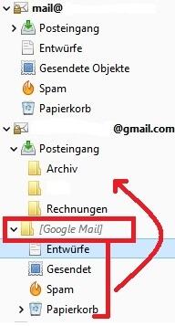 Keine Ahnung, ob TB oder gmail diesen Ordner "[Google Mail]" da immer reinhaut, ich möchte den nicht haben, sondern die Unterordner weiter oben unter dem Posteingang haben. Wie beim oberen IONOS-Account halt.