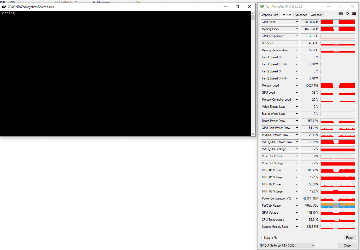 Danke für eure Hilfe! Ich habe euch die Sensorwerte von einem 3dmark TimeSpy Run beigefügt. Dieser stürzt ebenfalls manchmal mit Black-Screen ab und der Score ist aufgrund der 250Watt bzw. Takt von 1645-1745Mhz entsprechend schlecht (Graphics Score 15907).