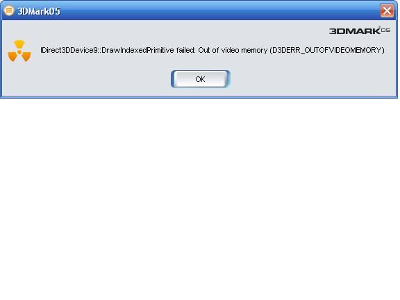 Das macht sich insofern bemerkbar das ich Battlefield 2 nur mit 2-3 frames pro sekunde spielen kann und §dMark2005 wird mit folgender Meldung abgebrochen: Can't connect to Video DDR Memory.