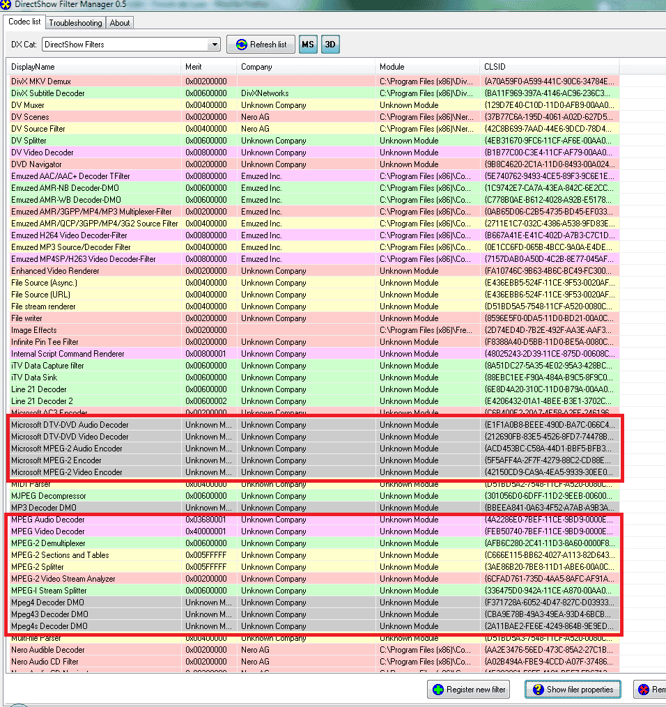 es steht hinter den mpeg2 codec einträgen nur unkown company und unknown modul, was heisst das jetzt? Bild hab ich mal angehängt.