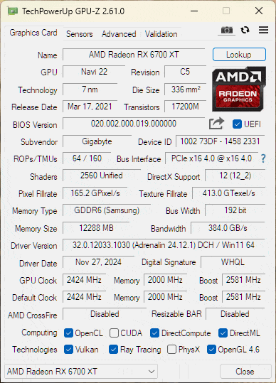 Um endlich wie zocken zu können habe ich gestern eine Gigabyte RX 6700XT Eagle privat gekauft und abgeholt. (Von einem feundlich und seriös wirkenden Verkäufer, der versichert hat, dass die Karte bei ihm einwandfrei funktioniert hat und mir gerne noch sein neues Setup mit 4K und RTX 4080 vorgeführt hat).