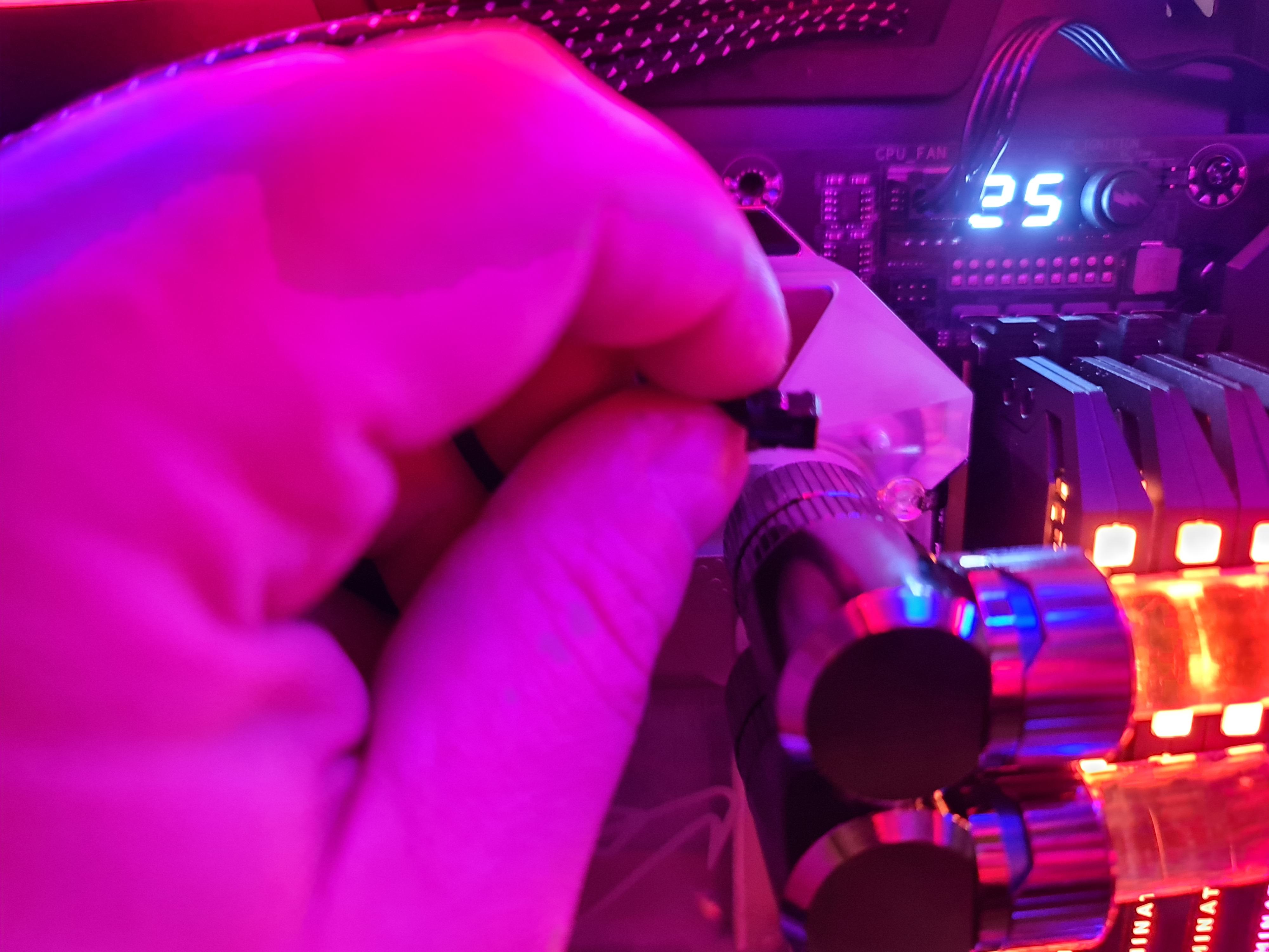Nachdem ich den Kühler und Backplate auf die Grafikkarte geschraubt hatte, habe ich diese gleich eingebaut mit einem Riserkabel von Coolermaster. Habe dann das System wieder befüllt und bis dahin war alle in Ordnung. Nachdem das System komplett befüllt war wollte ich den Rechner starten und nach ein paar Sekunden ging er einfach aus und läßt sich nun nicht mehr starten. Hatte zu diesem Zeitpunkt keinen Monitor angeschlossen kann somit auch nicht sagen ob er was angezeigt hat.