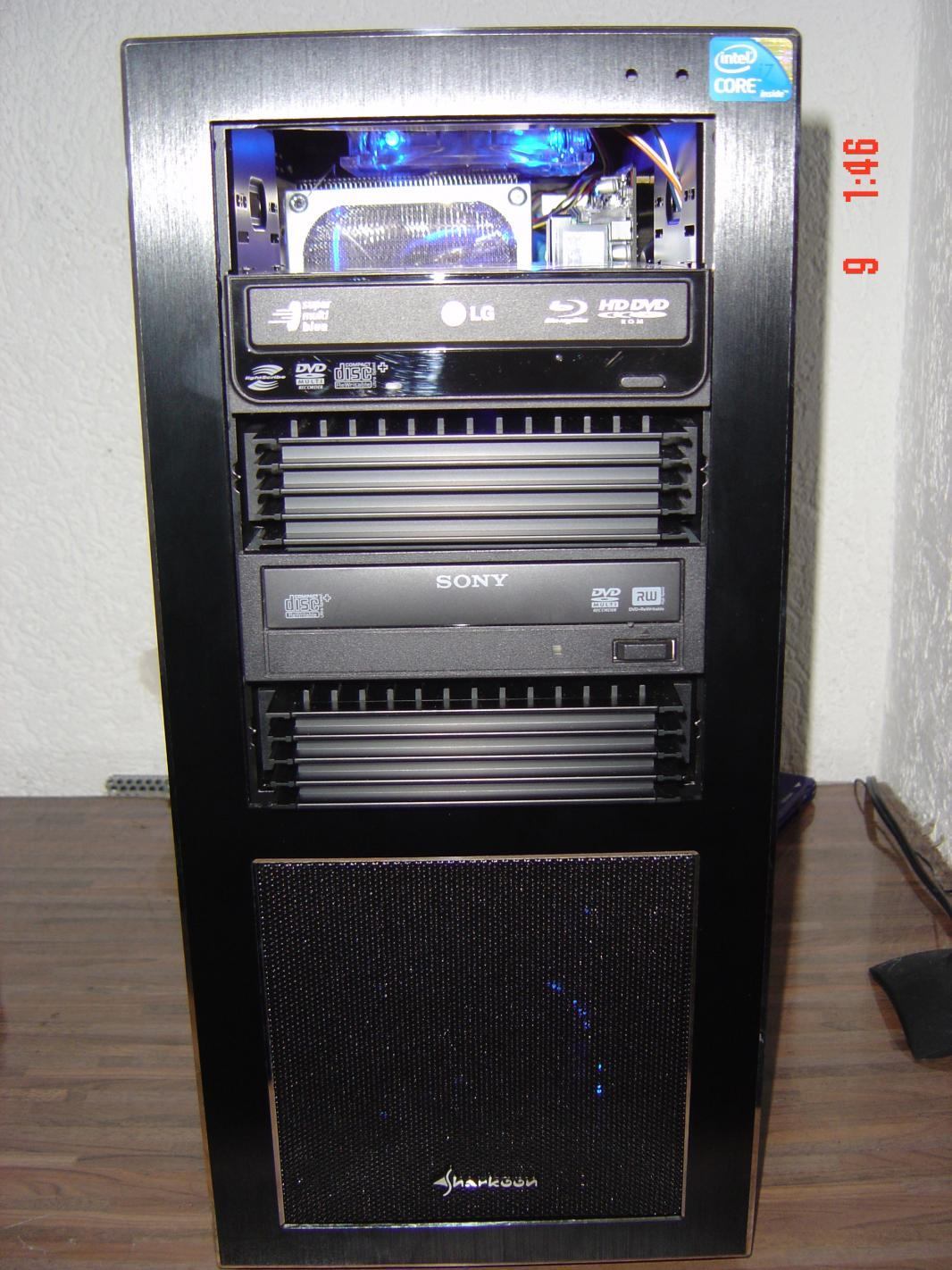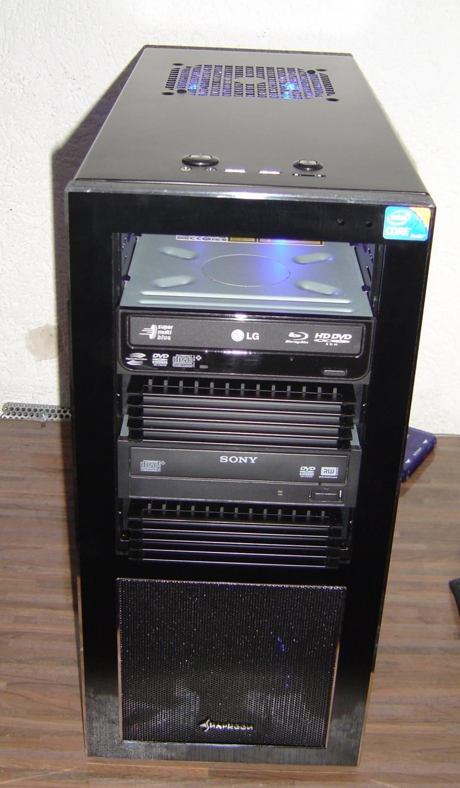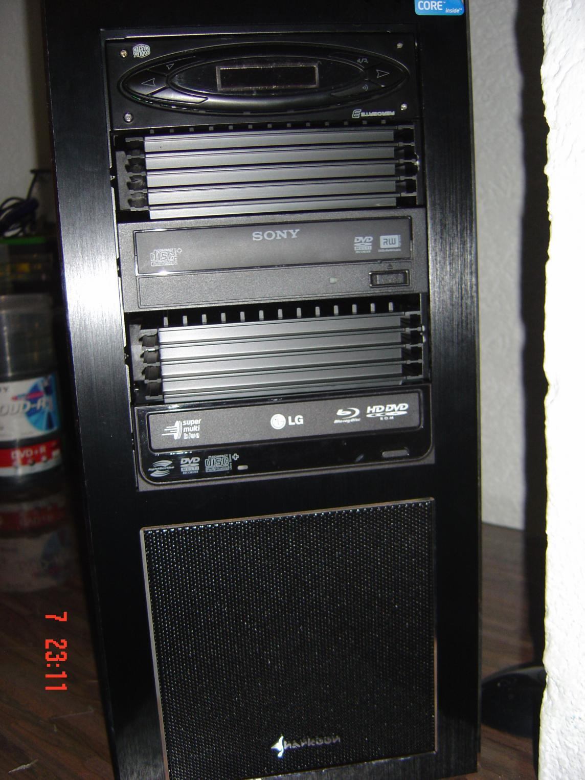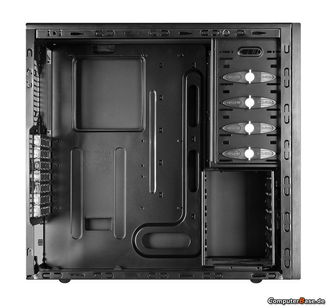 So hier das Grundgehäuse. Es ist das beste, das es für dieses Geld gibt und ist genau das was ich wollte. Aluminium Front Gebürstet. Innen schwarz Matt lackiert, 5 x 5,25 Schächte in der Front, Kabelsystem und und und.