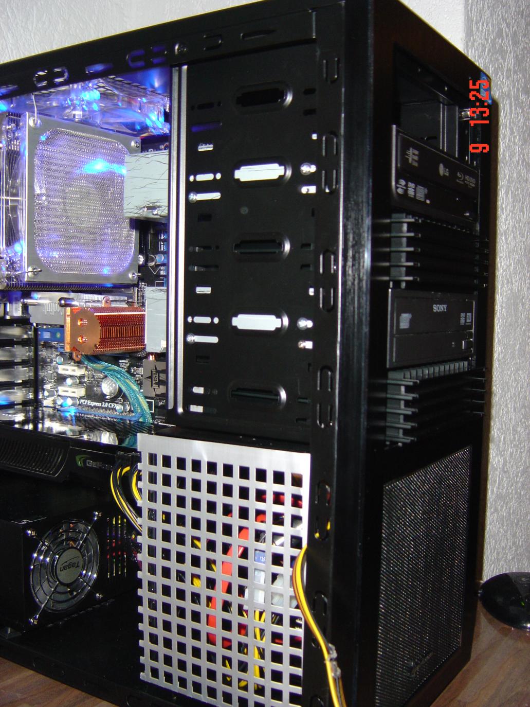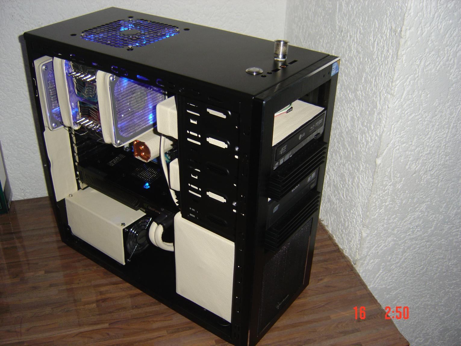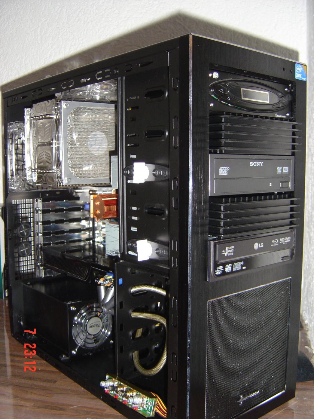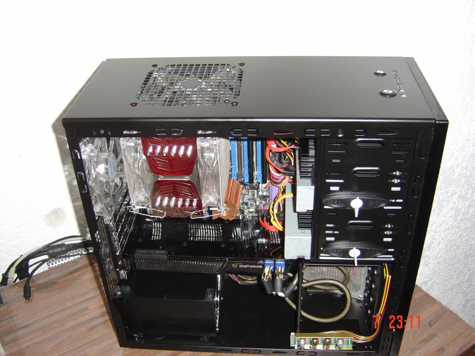 So hier das Grundgehäuse. Es ist das beste, das es für dieses Geld gibt und ist genau das was ich wollte. Aluminium Front Gebürstet. Innen schwarz Matt lackiert, 5 x 5,25 Schächte in der Front, Kabelsystem und und und.
