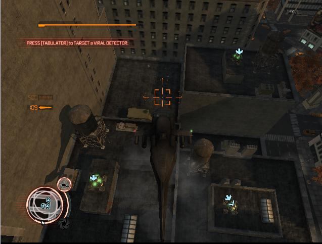 Once you're in the helicopter, the game will force you to learn how to use the helicopter succinctly before actually forcing you to use it. First, you'll be asked to test out and use the helicopter's flight systems. This means that you should learn how to make the helicopter gain and lose altitude, how to make it go forward and stop, and how to turn and otherwise maneuver the craft. Then, the more interesting weapons systems tutorial will begin, in which you'll be able to toggle between your machinegun and missile launcher while taking out a trio of devices atop a skyscraper's roof.