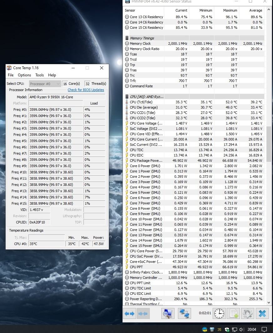 Check Mal bitte mit HWinfo die temps gegen. Scheint mir fast ein wenig zu gut oder was für settings hast du für die CPU eingestellt?