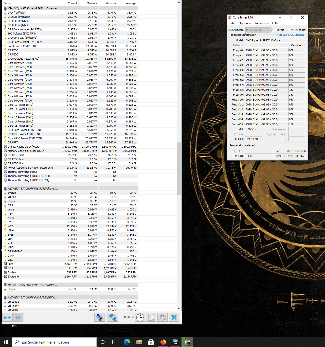 Hab das Sys gestern zusammengebaut und alles steht noch auf default. Aktuell bin ich am Windows einrichten von daher ist nicht viel Last da.