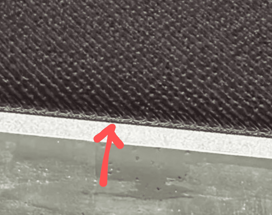 Man sieht ganz gut, das die Schicht höher als der Rand ist. Auch sieht man zwischen den einzelnen Linien auf der linken Seite ganz gut solche "Berge" an den Verbindungsstellen.Ich denke das ist immer noch eine optische Täuschung durch das Filament.