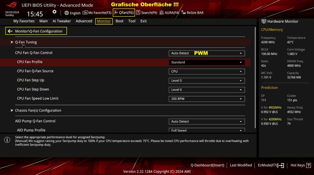 Welche Bios Version ist auf deinem ASUS ROG Strix X870E-E Gaming WIFI installiert, und wo stellst du die Lüfter ein, im Uefi/Bios bei Q-Fan Control oder in der Asus Armory Crate Software?