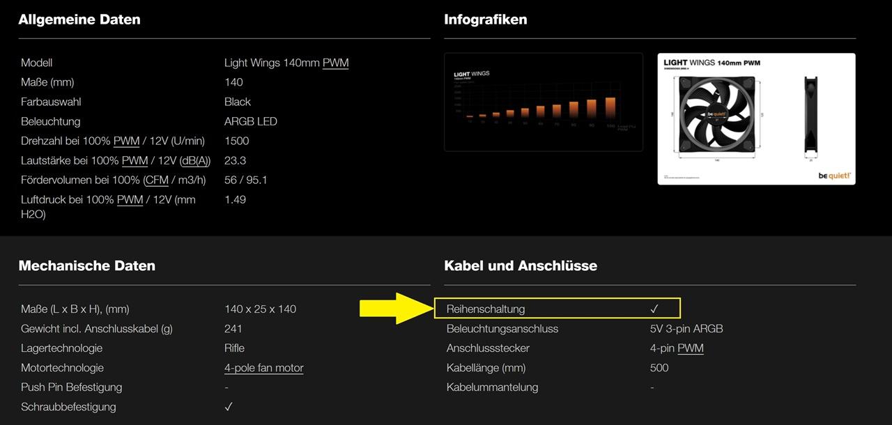 Die be quiet! Light Wings PWM, 140mm Lüfter haben eine Reihenschaltung (Daisy Chain) warum hattest du dir die Verteiler Kabel gekauft?