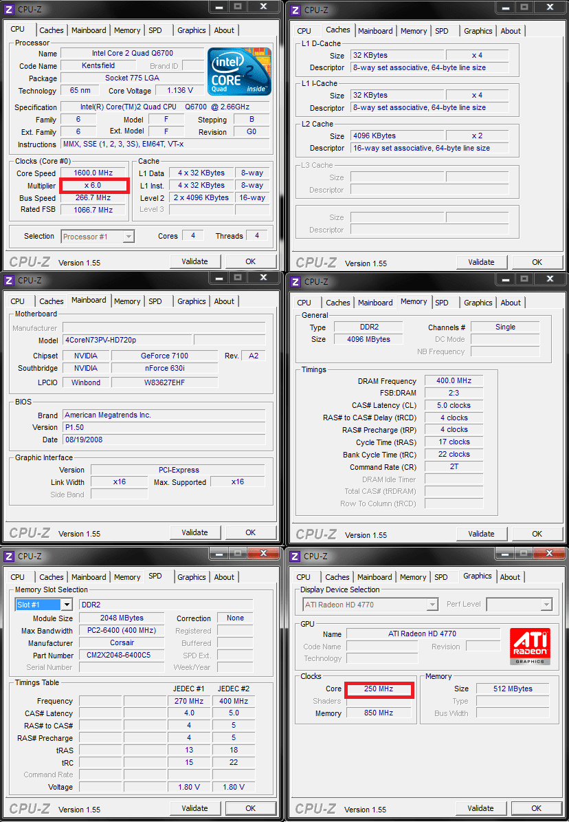 Gestartet wird mit dem Multiplikator von 6, der Ram ist ebenfalls beim Starten untertaktet. Beim letzten Start des Rechners bot meine Grafikkarte mit der GPU Clock nur 250 MHZ, nachdem ich nun neustartete um die CMOS Bilder zu machen ist sie wieder Standardmäßig bei 800 MHz.