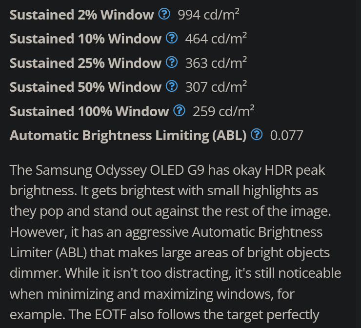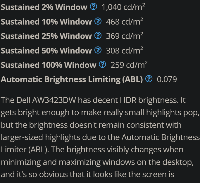 Spannend ist auch die Frage ob die 2024er QD-OLED Monitore weiterhin schon bei 10 % Window das ABL einschalten oder wie bei den QD-OLED TVs und OLED Monitoren und TVs üblich erst bei 25 % Window