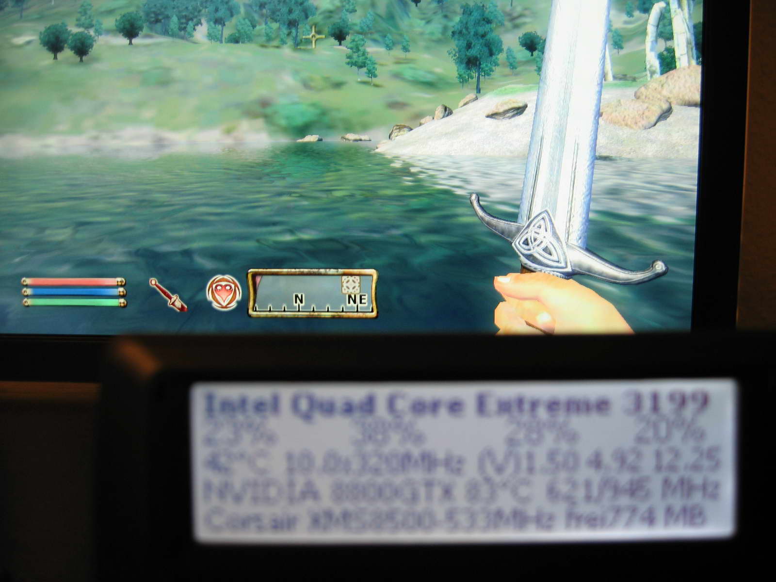 Hier das Ergebnis bei Oblivian...es nimmt gut mehrere Cores :p ...Bilder leider etwas unscharf.....kann halt schlecht spielen und fotografieren...frisst auch 700 MB Ram das Spiel....