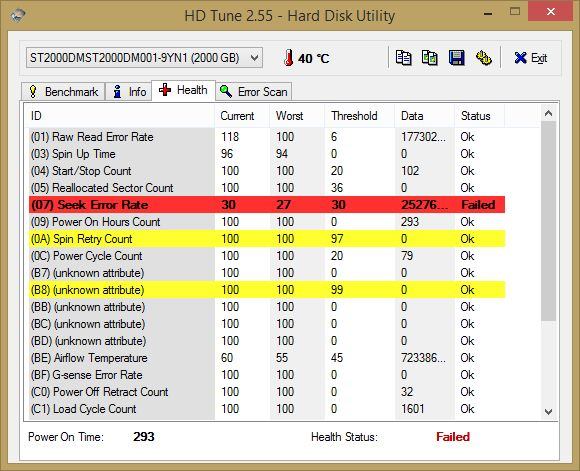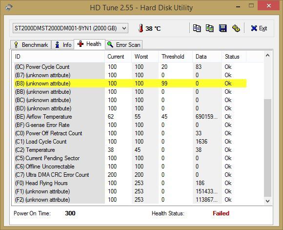 Ich hab daraufhin die Platte aus dem RAID entfernt und mit HDTune auf das SMART Ereignis geprüft mit folgendem Eregbnis: