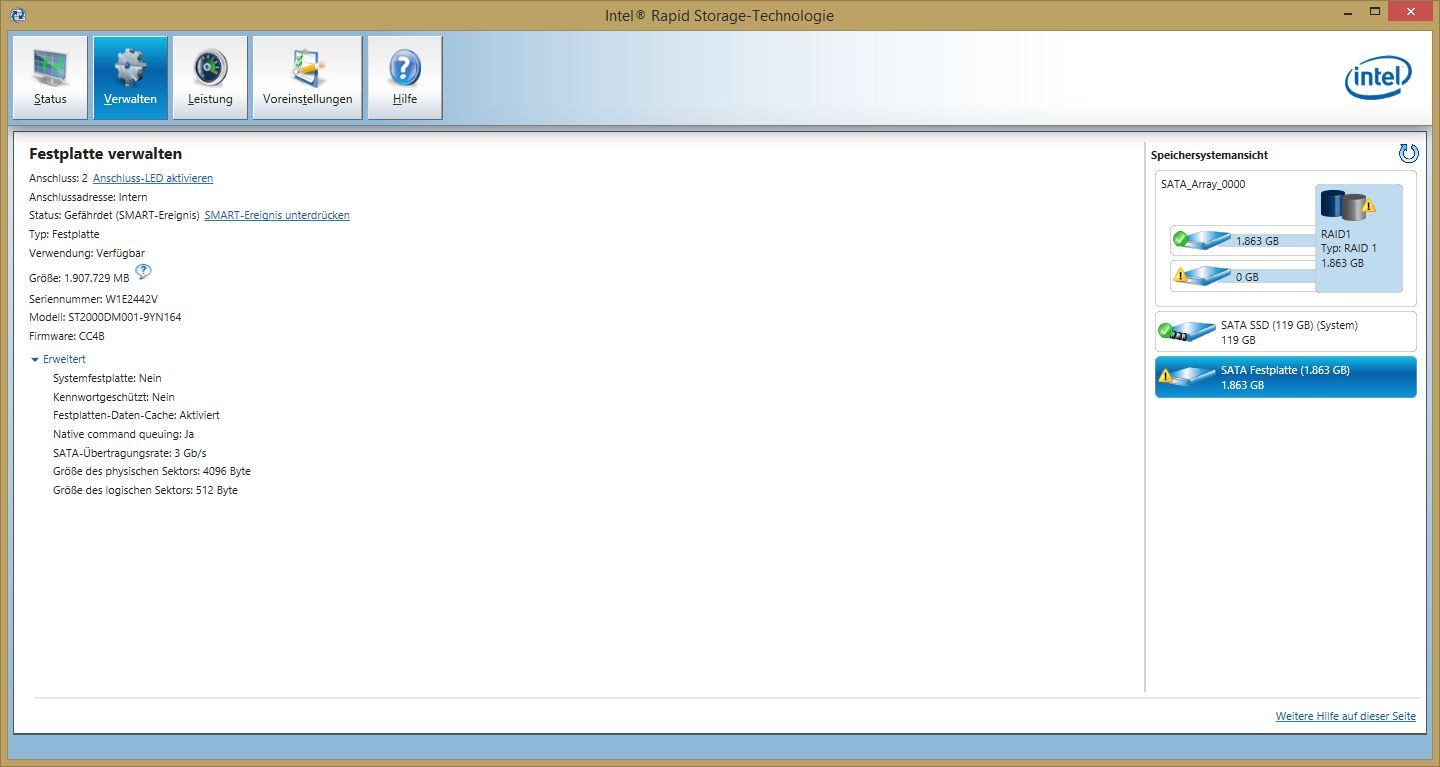Gleich am ersten Tag fiel mir ein komischen klicken auf. Das klicken trat auch auf, als ich eine der Platte ausgebaut hab (die andere blieb im RAID "degraded").