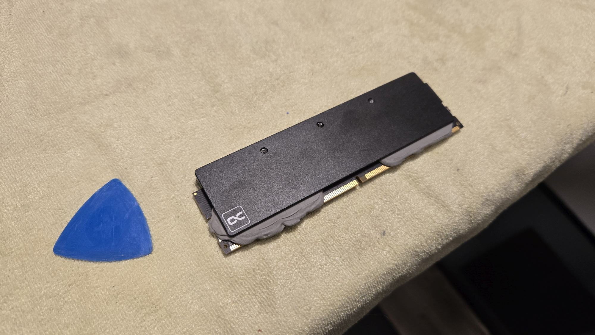 Da die Frage hier aufkam: Die Demontage von den OCZ Heatsinks inkl. dem CX-H1300 Putty ging relativ problemlos. So sahen die Riegel nach der Demontage aus: