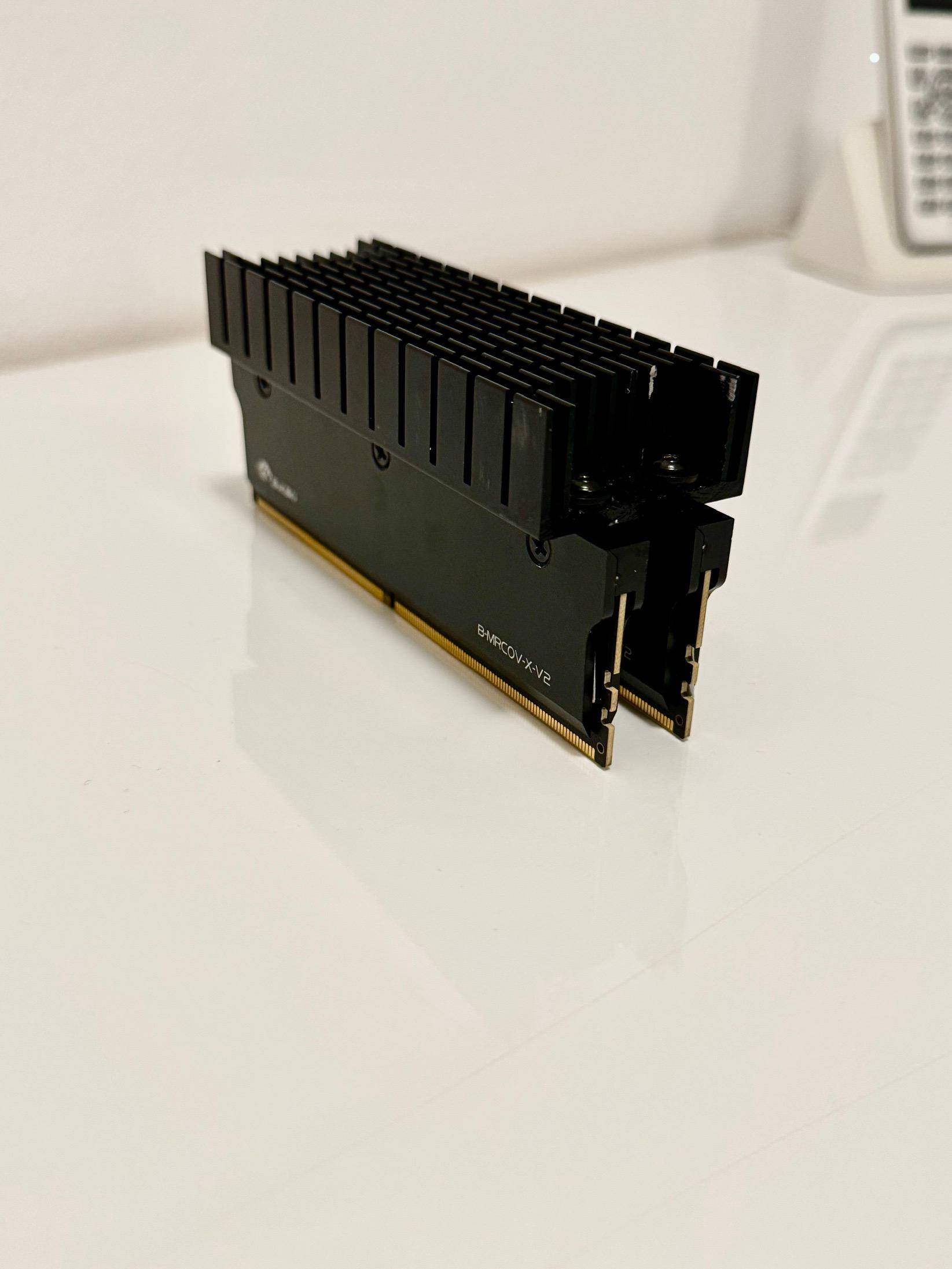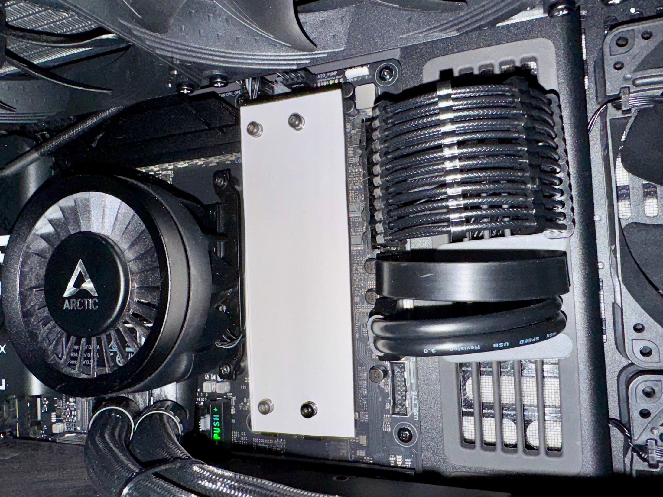 Seit ich eine aktive Belüftung auf den Speichern betreibe, schaffen diese jetzt auch die beworbene Geschwindigkeit. Mit der Abwärme der Grafikkarte, die ihre heiße Abluft auf die Speicher und Richtung AiO-Pumpe fächert, mochten die Speicher die höheren Geschwindigkeiten eher nicht.