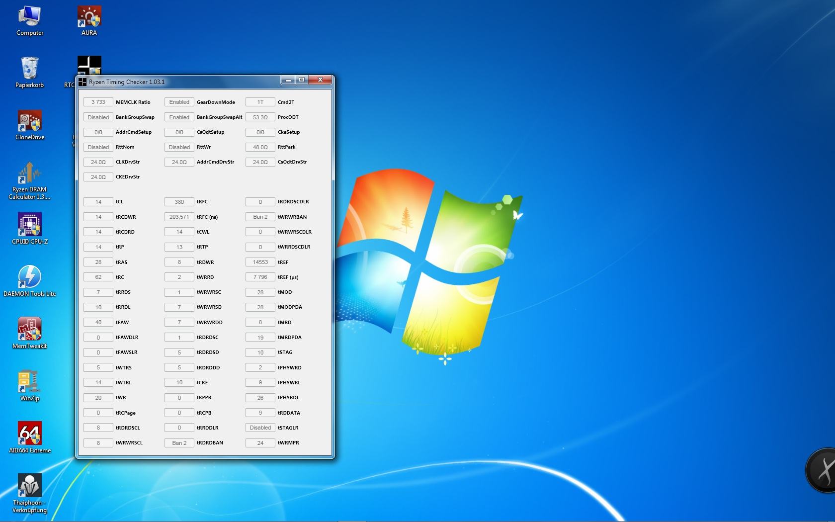 Die Einstellung procODT habe ich auf 60 Ohm eingestellt, sonst wurden keine Werte verändert. Die CPU ist noch nicht übertaktet. Bin aber wieder auf 2933 MHz gegangen, will morgen mal ausloten was so geht.