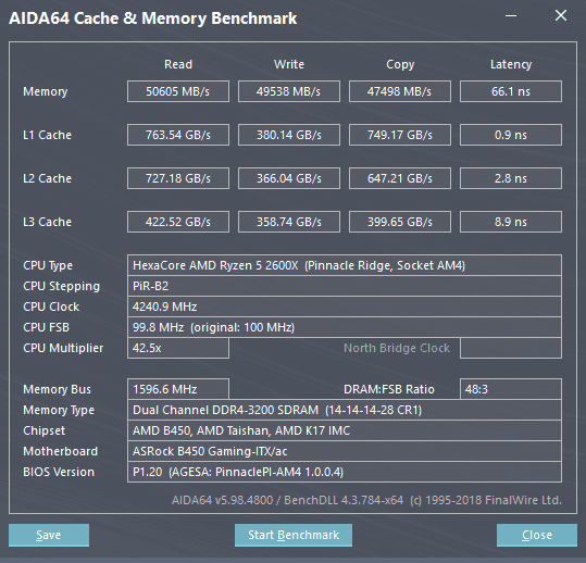 Ich lass zum jucks nochmal Aida64 cache&mem Test laufen, plötzlich habe ich 64,x ns anstatt wie bisher immer 66,x ns (3200 CL14). Komisch. Lass ihn nochmal laufen. Wieder 64,x ns beim Speicher. Ich hab den Test mit den gleichen Settings bestimmt schon 30 laufen lassen und immer kam 66,x ns raus, wieso plötzlich weniger?
